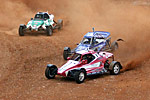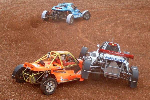 Kerka vor ihm mit sehr viel übersteuern zu kämpfen und wird weit herausgetragen. Engel wollte innen durch als in dem Moment Kerka´s Fahrzeug zurückschwingt und beide Fahrzeuge sich treffen. Das Aus für Kerka und eine halbe Runde später auch für Engel, jeweils mit Aufhängungsschaden. Vorne ging es weiter, Bartos hielt die erste Position souverän, dahinter machte sich Behringer an Hinnenkamp zu schaffen und ging Mitte der zweiten