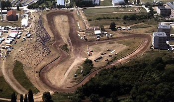 Das Fahrerlager befindet sich direkt an der Strecke, daneben auf einer Wiese, tagsüber noch als Parkplatz genutzt,